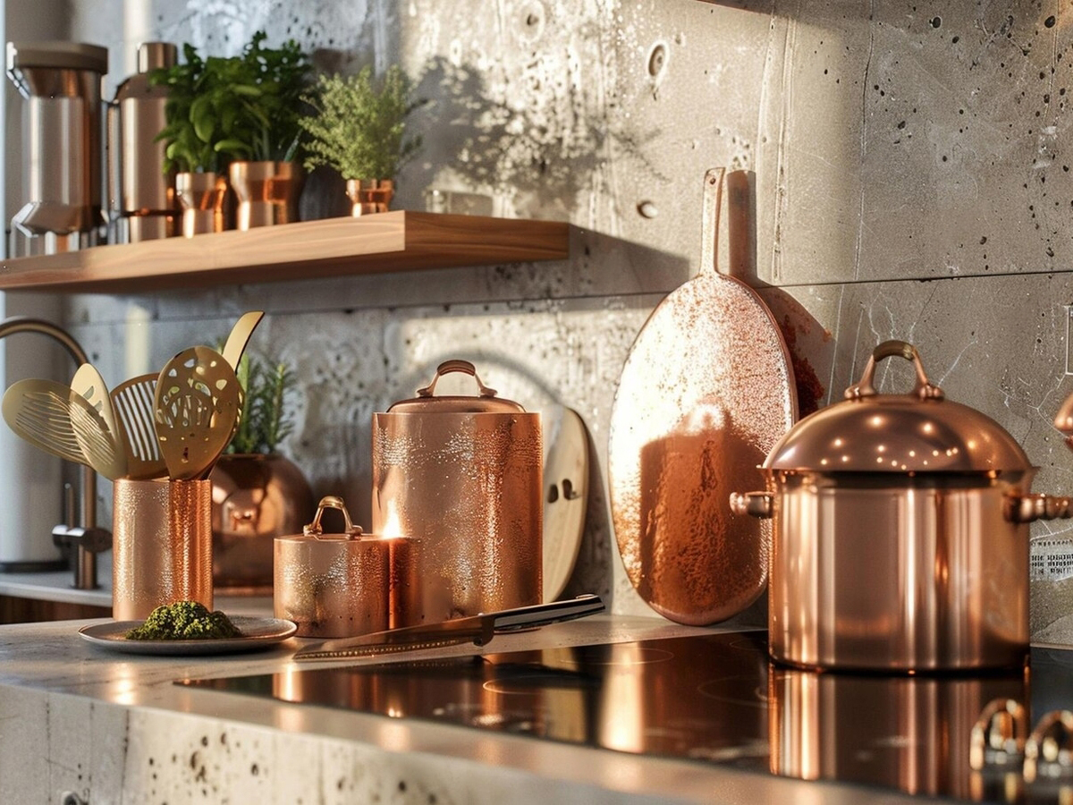 Copper utensils have a shiny, golden color that looks great in any kitchen. They add a stylish touch to your cooking space.